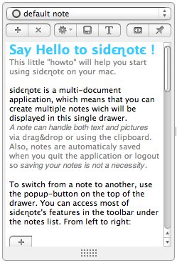 In my Windows life, this task is handled by constantly pumping Notes into Outlook, which was a bit ornerous and inefficient. Sidenote gives you easy access to notes in a small, unobtrusive package.